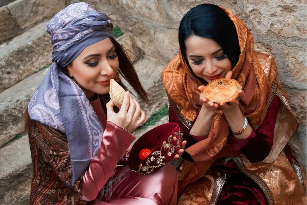 На праздник хозяйки всегда готовят пахлаву. Это сладкое кушанье из теста имеет несколько слоев. Пахлава является одним из символов. Имеются и другие традиционные для этого праздника блюда, также являющиеся символами. Например, гогал (круглая слоеная булочка) представляет собой Солнце, а шекербура (сдобные пирожки) – Луну.