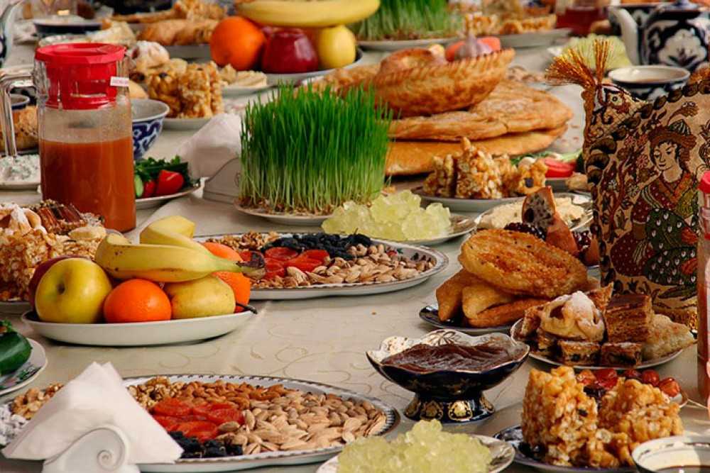 Как вы уже, наверное, поняли праздник Навруз Байрам является особенным для всех мусульман, поэтому они стараются поставить на стол в этот день только правильные блюда. Именно поэтому в каждом доме вам обязательно предложат отведать халву, приготовленную их проросшего зерна и сем блюд, названия которых начинаются на букву «син». Также на праздничный стол обязательно ставят орехи, сухофрукты, разные виды сыра и яйца зеленого цвета.