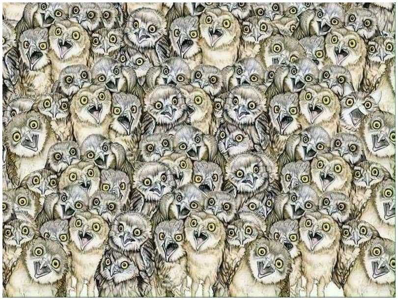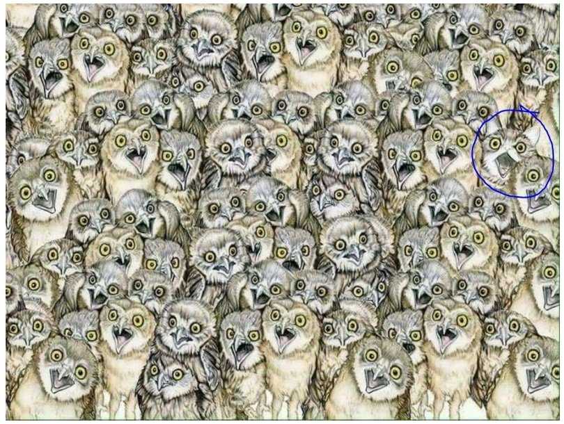 Юному детективу необходимо среди сов отыскать кошку. Для этого можно надеть шляпу и взять в руки лупу.