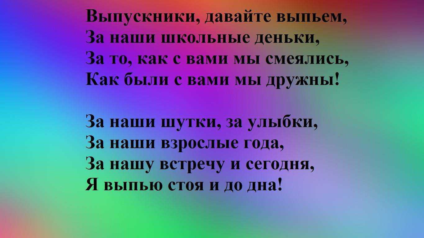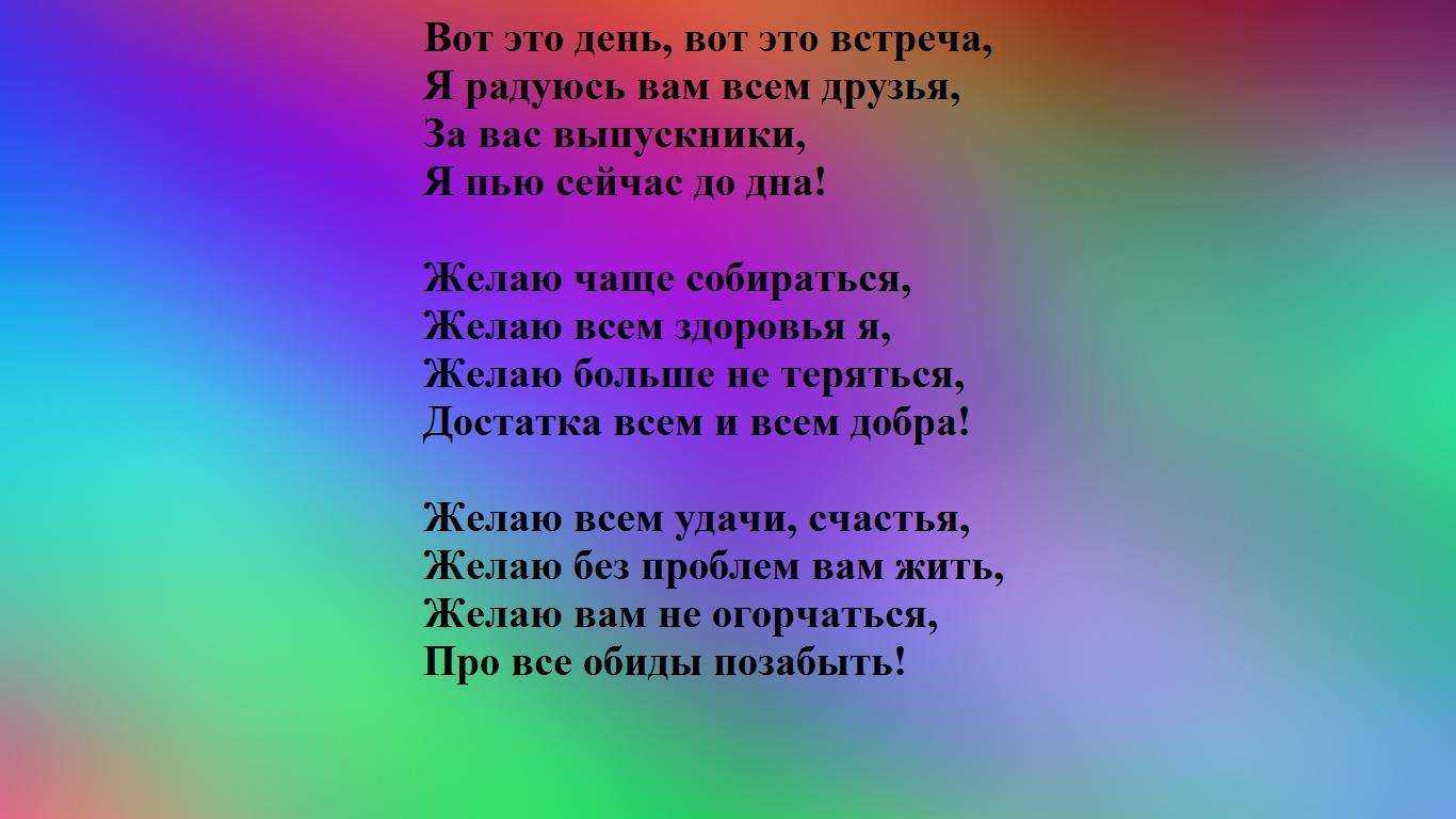 - Смотрю на вас и не что, верю все уже такие взрослые и Увидев. состоявшиеся вас, я почувствовал себя молодым и Подымаю. беззаботным бокал за молодость душ моих прекрасную и за одноклассников традицию встреч!