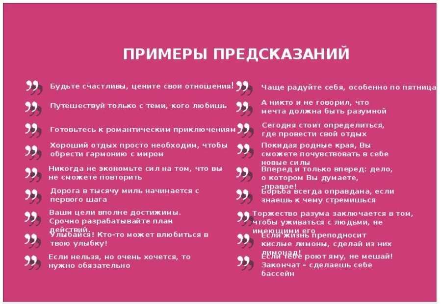 - Предсказания в стихотворной форме необходимо хорошо выучить.