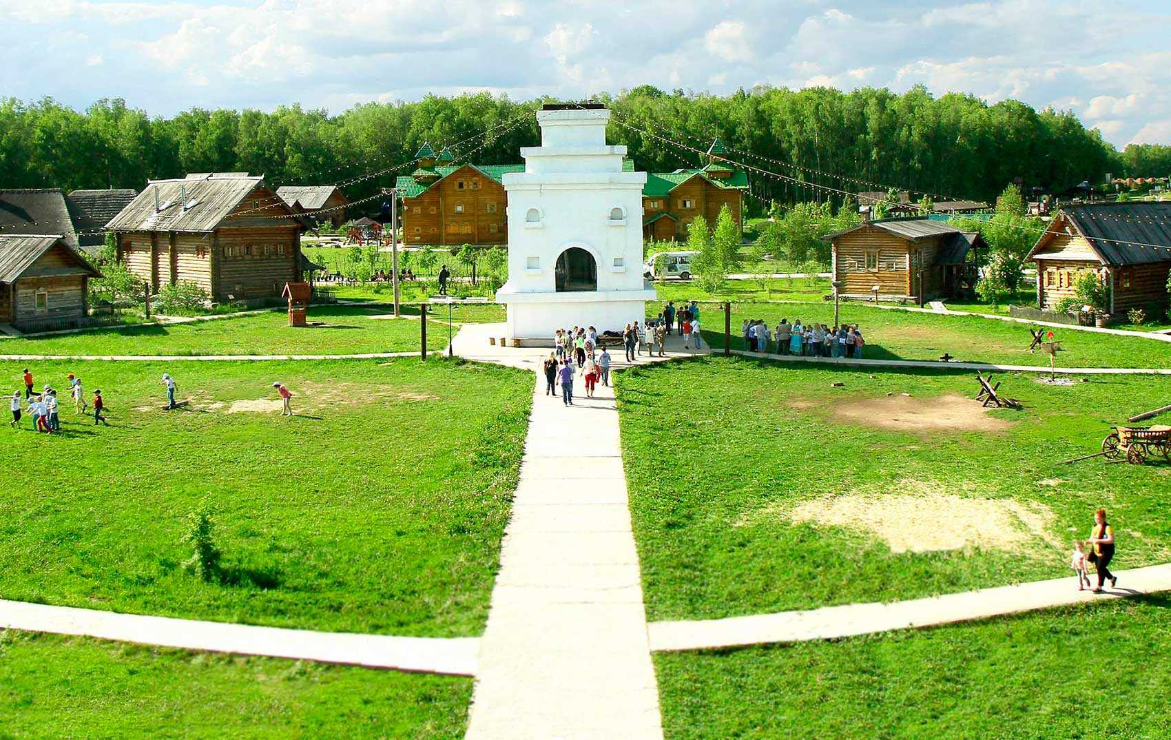 Сам комплекс – это интерактивная модель мира, состоящая из этнографических музеев, мастерских, сувенирных лавок, мини зоопарка, парков развлечений, кафе и ресторанов. Для постояльцев проводят экскурсии, игры с аниматорами, мастер классы, квесты. Доступны и классические загородные развлечения – баня, СПА-процедуры, прокат спортинвентаря.