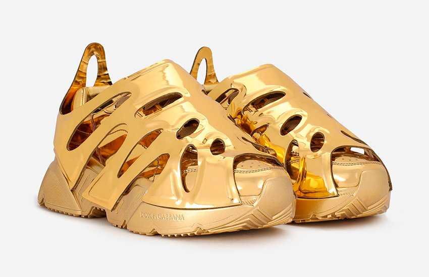 Доменико Дольче и Стефано Габбана уже несколько сезонов подряд делают ставку на поколение Z, но при этом не изменяют себе. Стиль кроссовок — футуризм и космос, к тому же, они полностью золотые! Обувь для смелых и любящих экспериментировать сникерхедов.