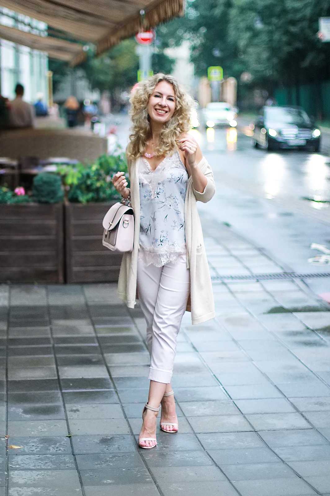 Нежная розовая пастель придает луку в бельевом стиле романтичности и особенного скромного шарма. Сет в перламутровых, дымчато-розовых, абрикосовых тонах будет смотреться свежо и целомудренно