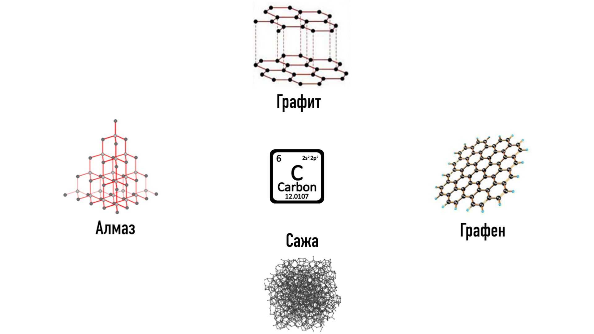 По сути, графен — это углерод, а углерод невероятно распространённый элемент на Земле. Графит, алмаз, сажа, графен — всё это углерод, а точнее, его аллотропные формы. Химическая формула у них идентична — «С», но то, как атомы углерода соединены друг с другом, и определяет свойства материала. Алмаз невероятно твёрдый, графит из грифеля карандаша легко можно сломать. Всё потому, что одни и те же атомы в графите и алмазе расположены по-разному.