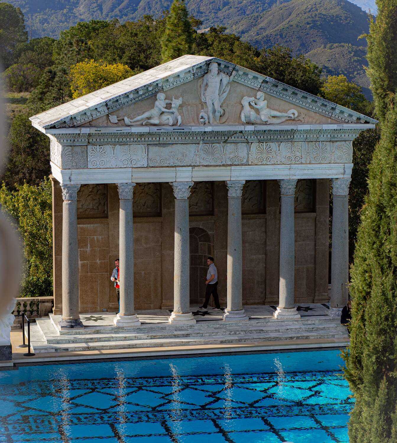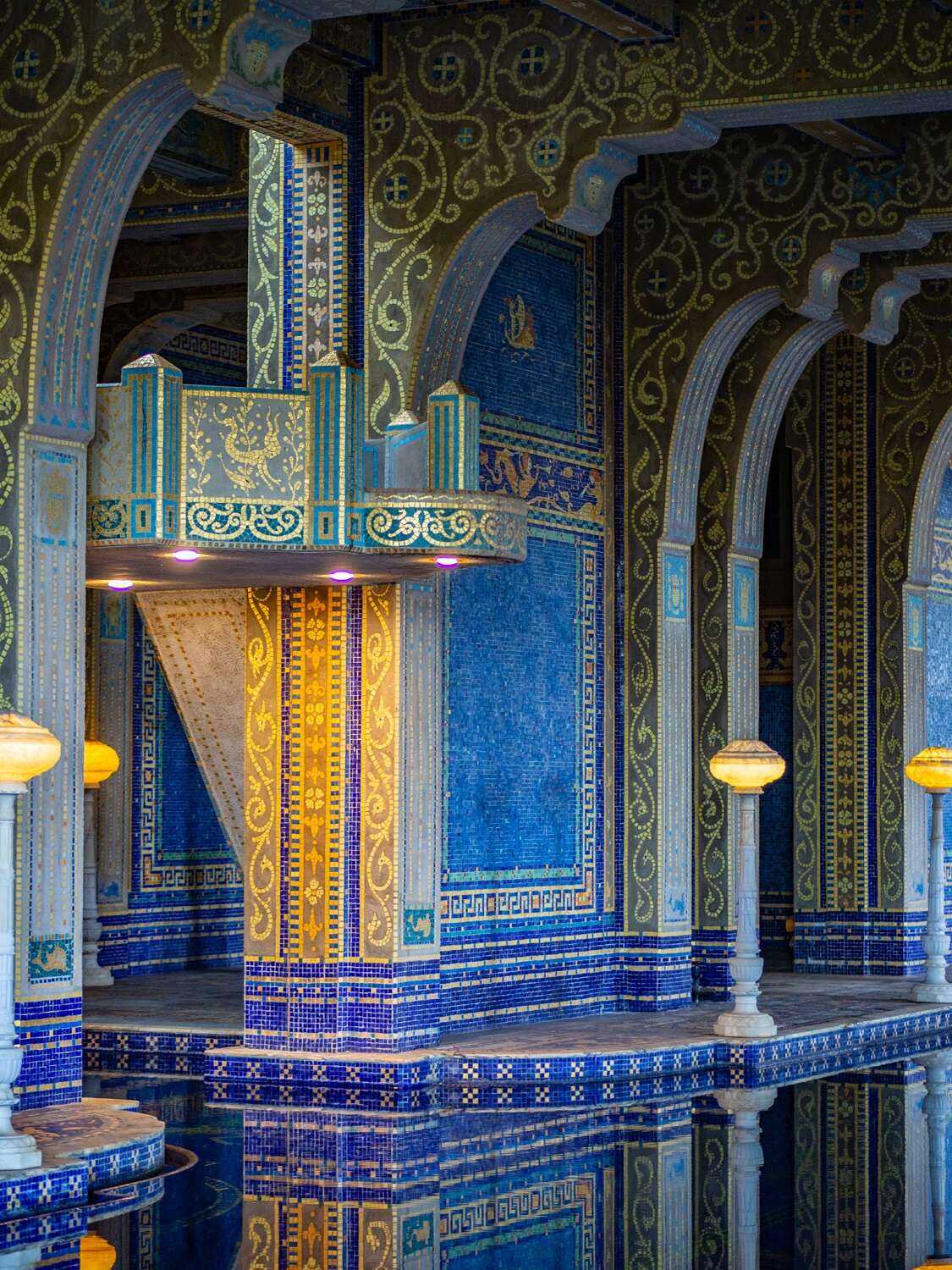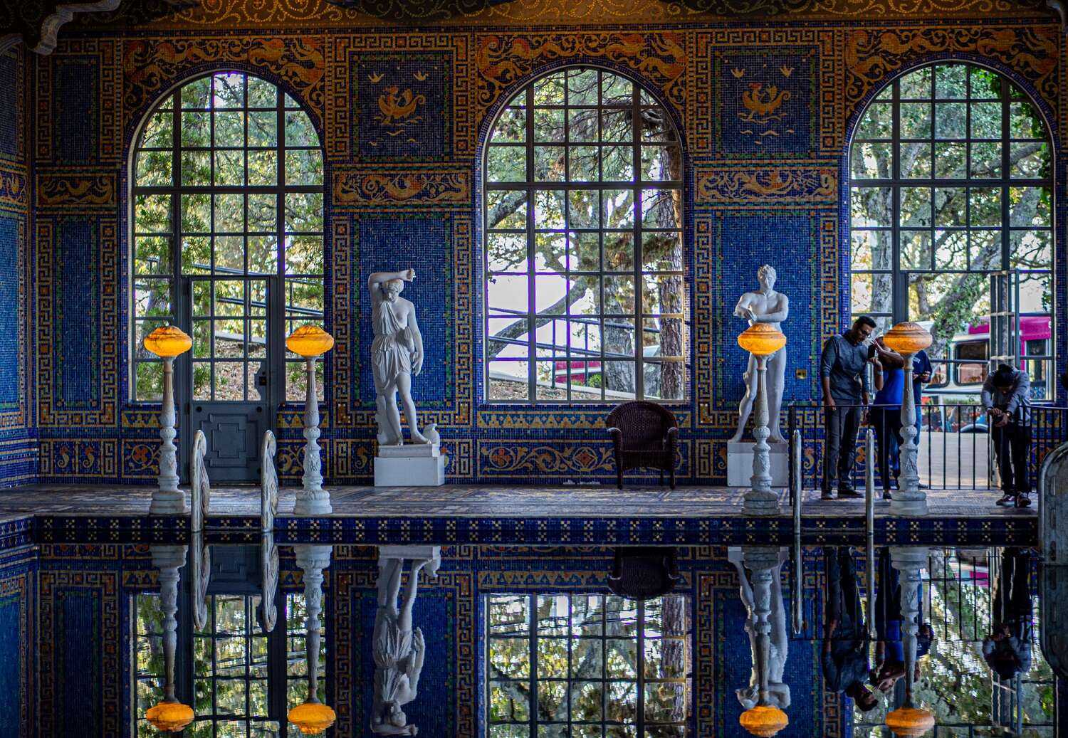 Второй бассейн (“Римский”) — крытый, в его декоре использовано более миллиона мозаичных плиток, изготовленных в Венеции. Часть плиток покрыта настоящим золотом. Именно такой плавательный бассейн богач Херст считал подобающим для себя и своих знаменитых гостей.