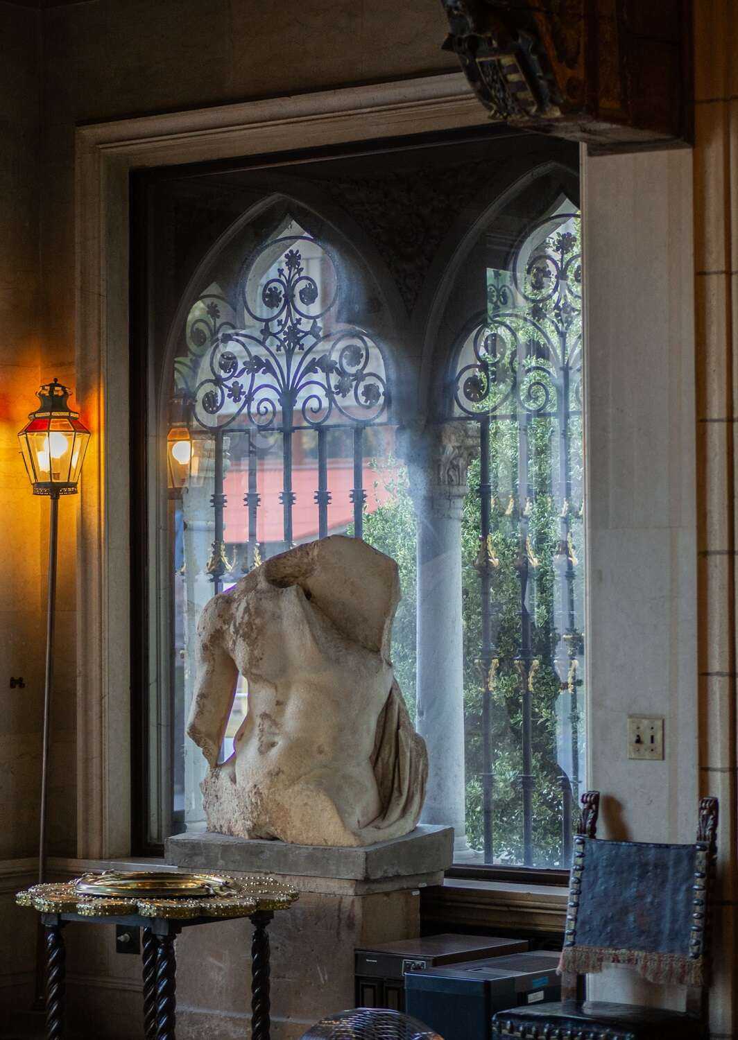 Экстравагантный и эклектичный комплекс удивляет даже опытных путешественников. В нем собраны дорогостоящие предметы старины, причем без какой либо концепции. То, что задумывалось как средиземноморский стиль, в итоге напоминает архитектурного франкенштейна: элементы из множества эпох и культур перемешаны грубыми движениями. Вы найдете здесь итальянские эротические статуи, древнеегипетские религиозные символы, французские гобелены, английские кресла, византийскую мозаику, американскую мебель. Все это Херст скупал по каталогам и через представителей в таких количествах, что часть коробок с покупками так и осталась не распакованными до его смерти.