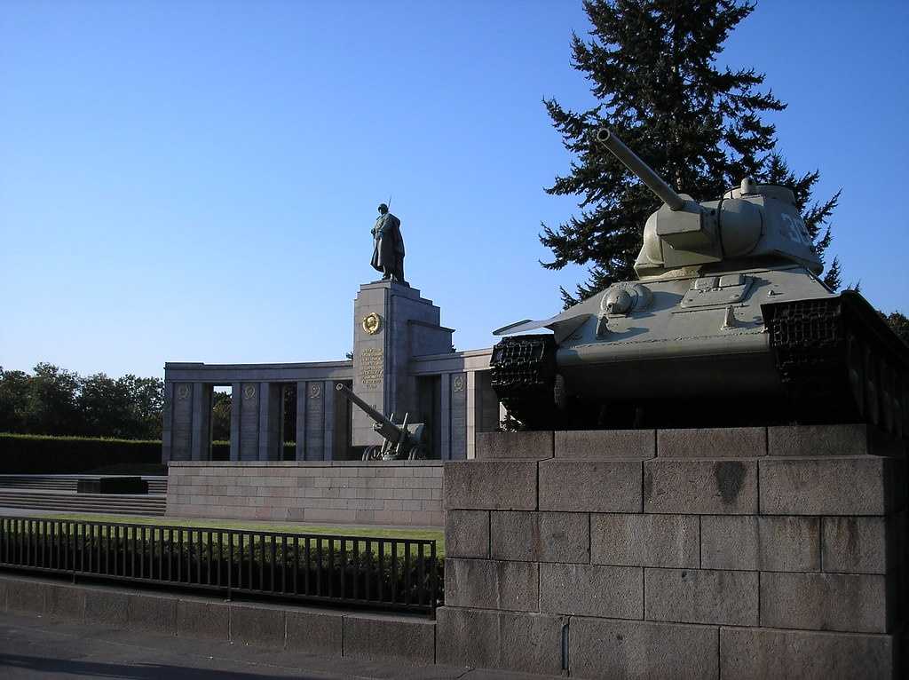 Речь о советских танках, которые в конце Второй мировой войны штурмовали Берлин. В частности, два Т-34, как символ нашей Победы, входят в комплекс Мемориала павшим советским воинам в Тиргартене (берлинский район Митте). Он находится в 500 метрах от здания бундестага и Бранденбургских ворот, в 600 метрах от российского посольства.