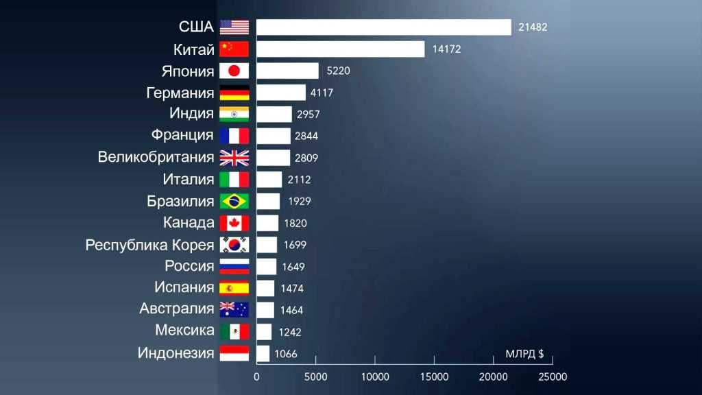 Более показательным является график среднегодового ВВП в абсолютном выражении за последние два десятилетия. И здесь США уверенно удерживают первое место. Некоторое снижение показателей можно объяснить коронационным кризисом. Изображение с сайта yandex.ru.