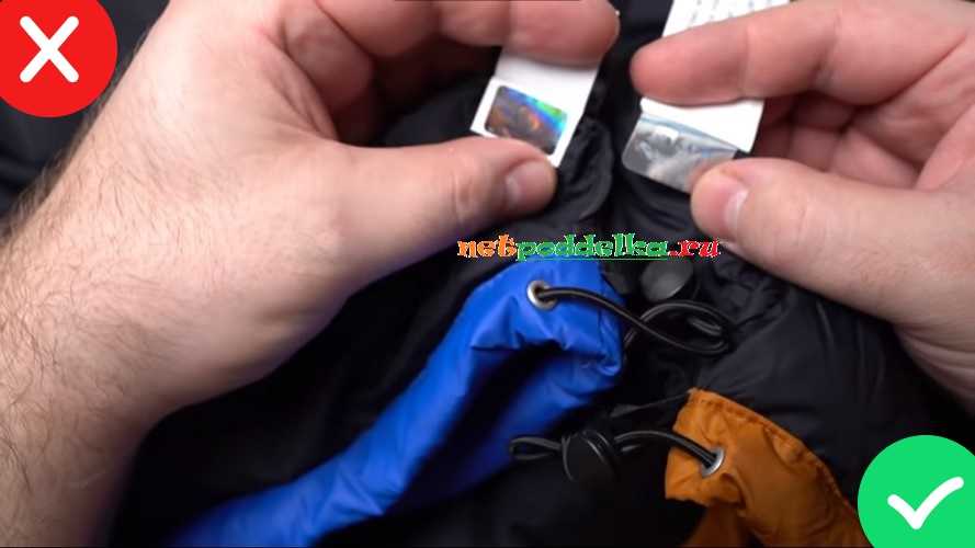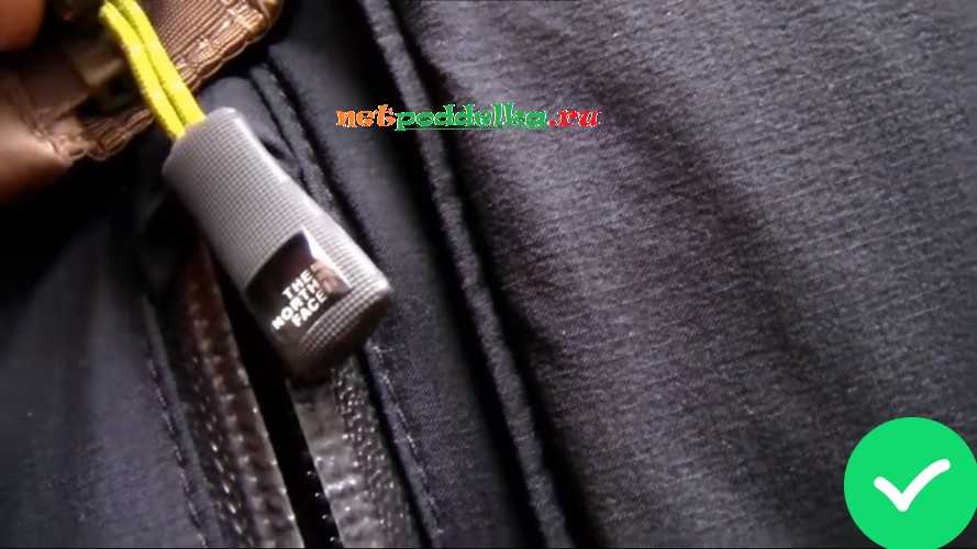 На молниях у пуховиков есть фирменные брелки. На них присутствует лого бренда. При этом логотип может быть скрыт под специальной прозрачной накладкой. Реплики не всегда копируют данную деталь. Поэтому проверка фурнитуры − хороший способ как отличить подделку куртки The North Face.