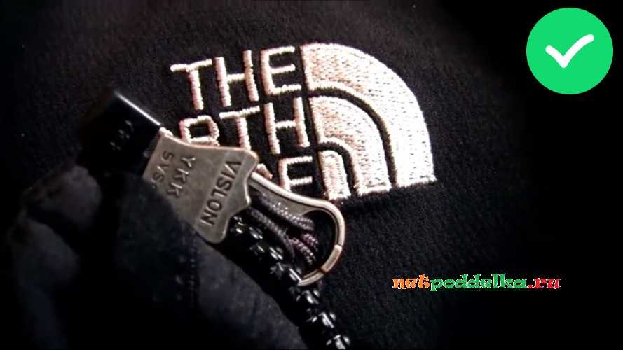 Бренд The North Face использует на своих изделиях фурнитуру YKK. Соответствующая надпись обязательно должна присутствовать на бегунке молнии.