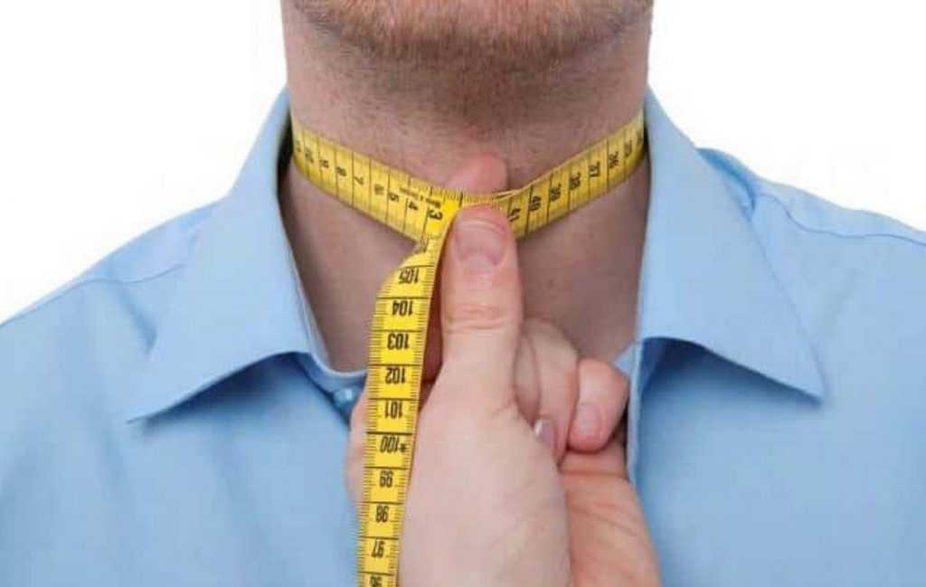 Она должна находиться в расслабленном состоянии. Сантиметровую ленту нужно пропускать вокруг. Сзади необходимо проходить над самой выступающей точкой, сбоку и спереди — по основанию шеи, замыкаясь в месте под кадыком. При этом следует добавить один или два пальца в расстояние между кожей.