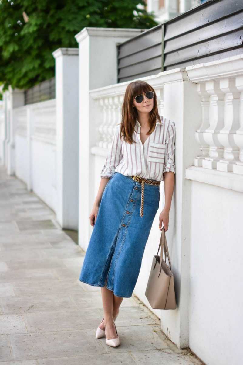 Джинсовые юбки в 2019 – 2020 году стали сдержанными, дизайнеры выбирают для них расклешённые и прямые модели. Демократичные и универсальные джинсовые трапеции остаются вне времени. Из цветов популярны чистый денимный индиго, серый и голубой.