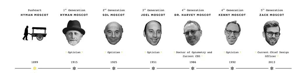 Ярко-желтые вывески Moscot — тогда известные как Sol Moscot — стали культовыми в нью-йоркском LES, а лояльные местные клиенты оптики помогли бренду пережить Великую депрессию. Сын Сола, Джоэл Москот, начал руководить Sol Moscot в 1951 году и занимался этим более пятидесяти лет.