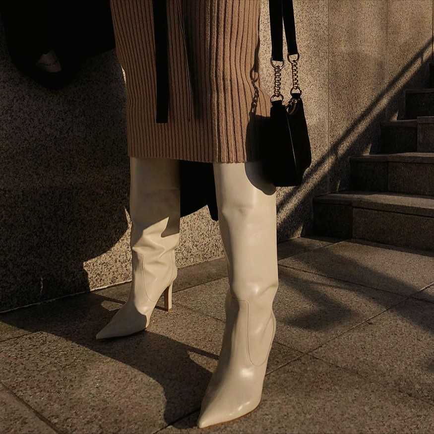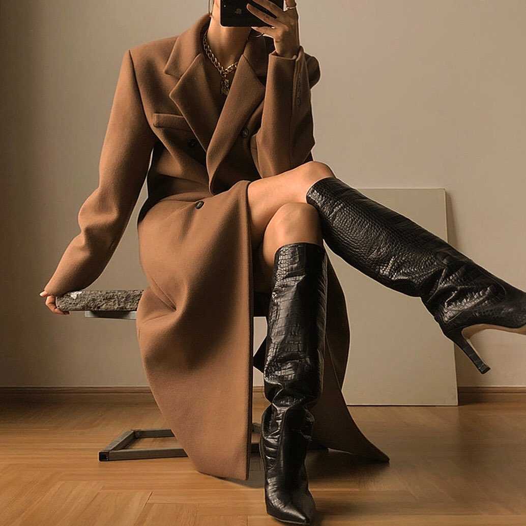 Что касается обуви, то лучшей парой для тёплой куртки осенью-зимой будут ботфорты и другие высокие сапоги без каблука, «казаки», либо ботинки-дезерты.