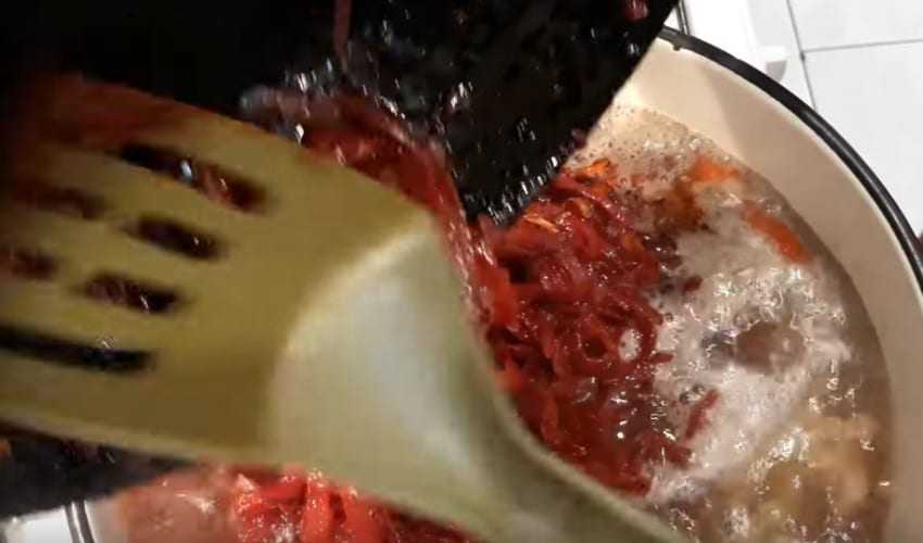 Погасите огонь, после чего выдавите в суп чеснок, накройте крышкой и дайте постоять как минимум 5 минут.