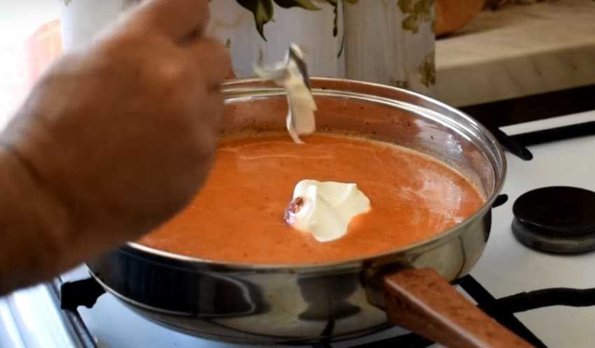 Я видела рецепты, где добавляют всего 3 столовые ложки сметаны. На мой взгляд это мало, получается вода-водица, а не соус. Добавляйте больше, много не будет, зато соус получится насыщенный и невероятно вкусный.
