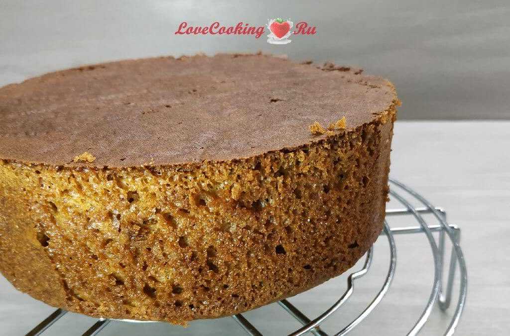 - Готовому лакомствуу необходимо дать полностью остыть и обязательно отлежаться после этого в прохладном месте, обернутым в пленку, чтобы он стал более упругим и готовым к дальнейшим манипуляциям по созданию торта на его основе.