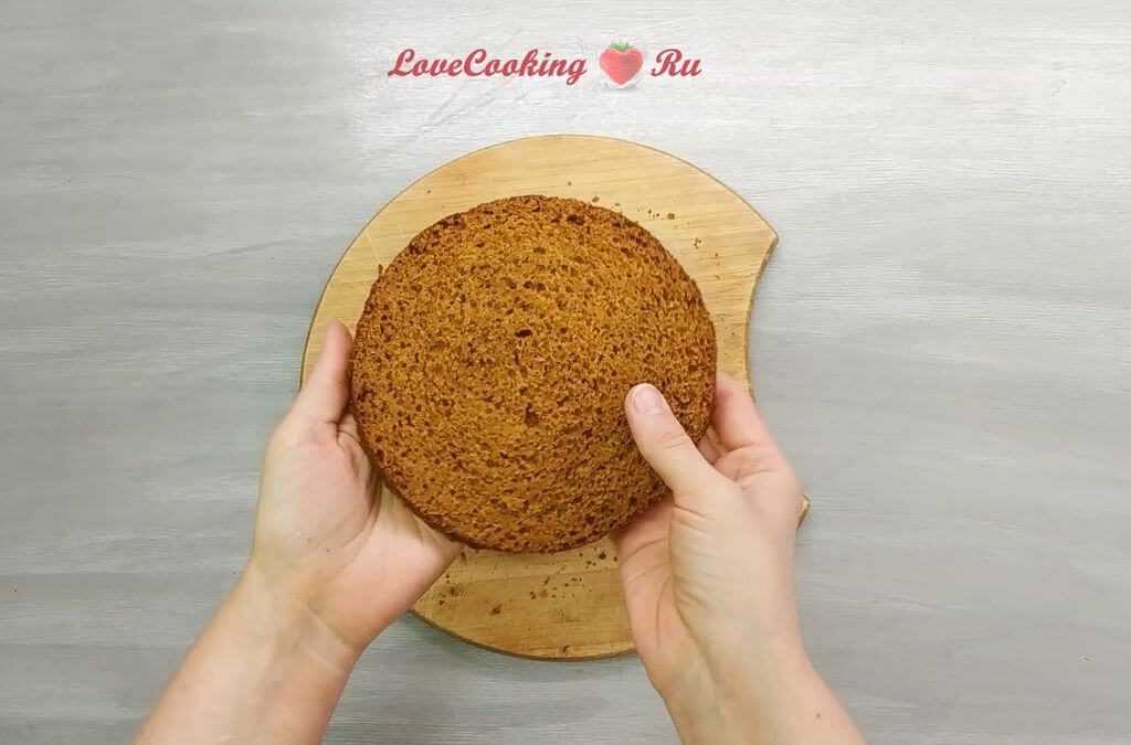 В идеале готовому коржику необходимо отлежаться в пищевой пленке (благодаря ей угощение не засохнет и внутри останется влага и сочность) около одних суток, но это если вы хотите его разрезать на части и хорошенько пропитывать. Ведь какой торт да без начинки, так что учитывайте эту рекомендацию.