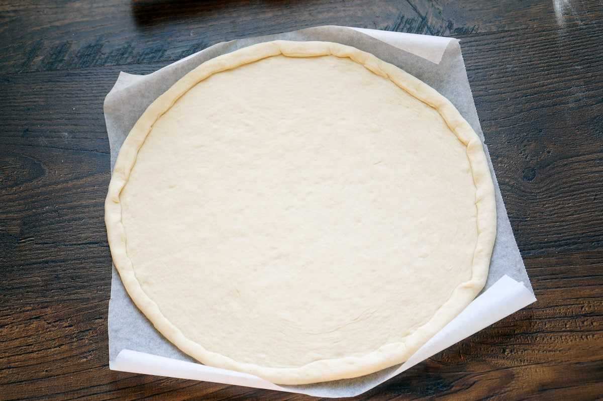 - Формируя лепешку для основы пиццы, растягивайте тесто от середины к краям. Края должны быть на 1-2 см толще середины пиццы