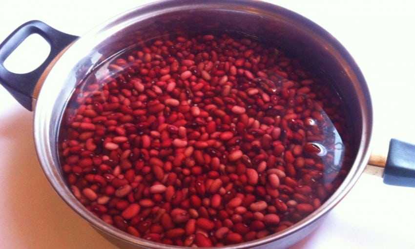 Подготовленную фасоль заливают водой и оставляют набухать не менее 6 часов. Всплывшие на поверхность зерна могут оказаться пустыми, поэтому обычно их выбрасывают.