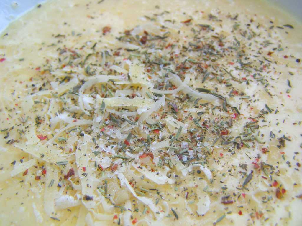 Очень хорошо смешаем все эти три компонента! Чтобы было еще вкуснее и ароматнее, приправим эту смесь чем-то таким, что вы очень любите. У меня была смесь соли и моих любимых итальянских трав.