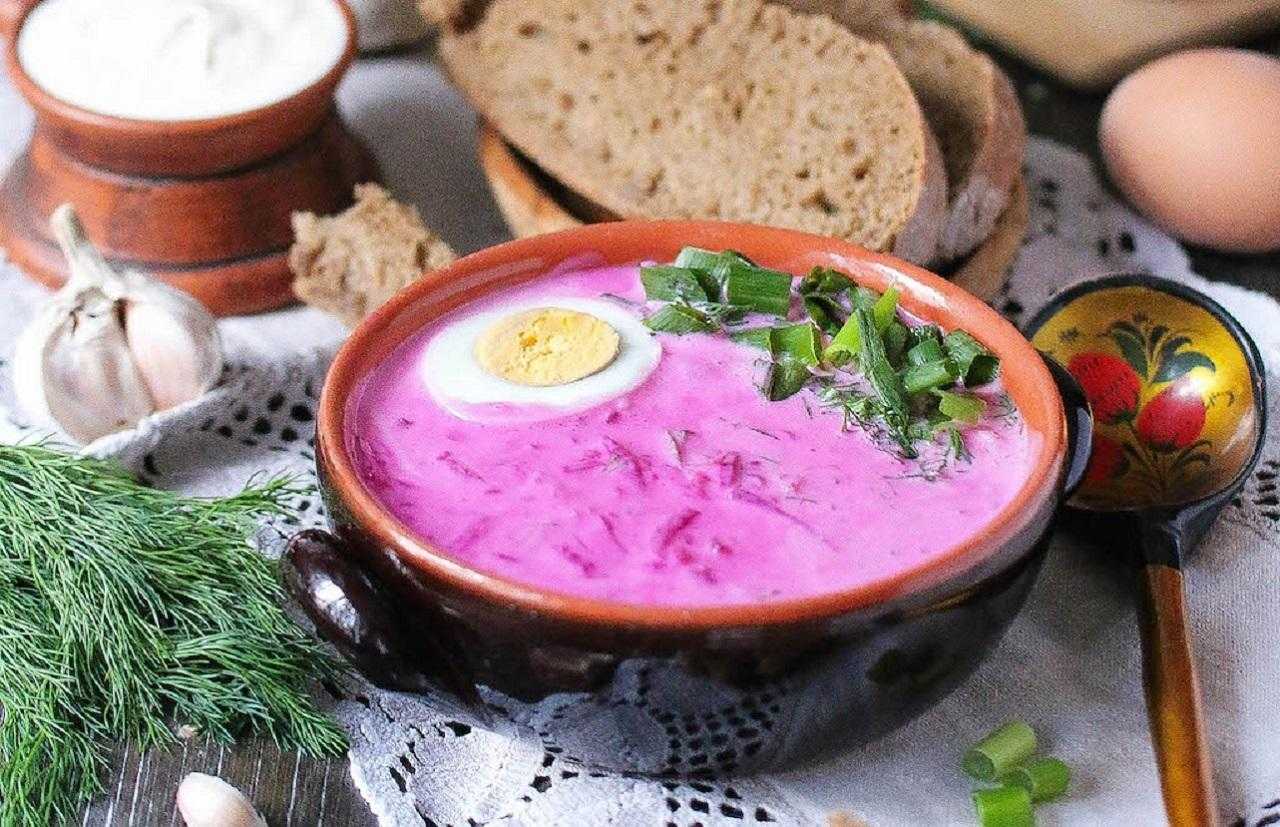 Русская и украинская кухни всегда славились своими холодными супами из свеклы, залитые квасом. Свекольник, или как его в народе еще называют «холодный борщ», готовят с помощью, заранее нашинкованной свеклой. Блюдо украшается зеленью, сверху рубят вареное яйцо и приправляют сметаной.