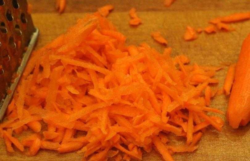 - Свежую морковь чистим и натираем на крупной терке, тушим в сковороде с добавлением растительного масла.