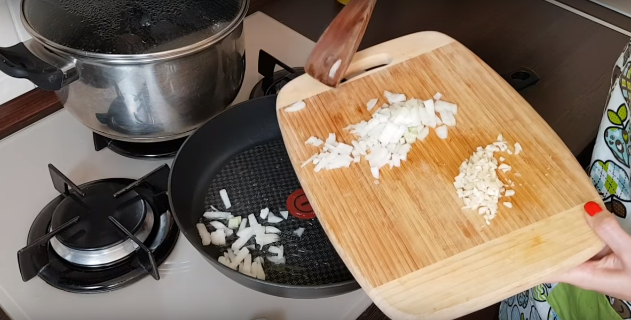 Лук чистим, промываем под проточной холодной водой, мелко нарезаем.