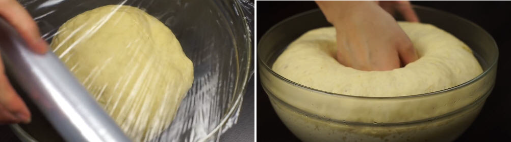 10. Уложите комок теста в миску, смазанную растительным маслом. Накройте пищевой пленкой и оставьте в тепле на 1-1,5 часа.