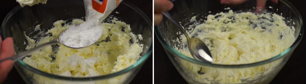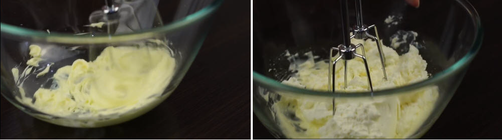 Сливочный сыр, молоко и пудру смешиваем миксером до однородной консистенции.