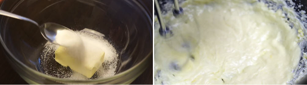 В другую большую миску кладем 70 грамм мягкого сливочного масла и 60 грамм сахара (примерно 3 ст.л.) и взбиваем миксером 1 минуту.