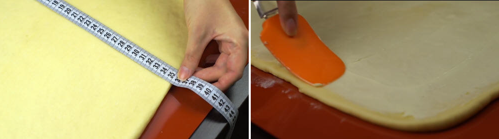 - Готовый полуфабрикат тончайшим пластом раскатывается на силиконовом коврике.