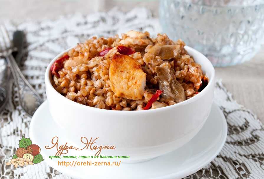 Чтобы куриное филе в сочетании с гречкой было более ароматным, к овощам можно добавлять нарезанные свежие грибы. Перед подачей в блюдо можно положить свежую зелень.