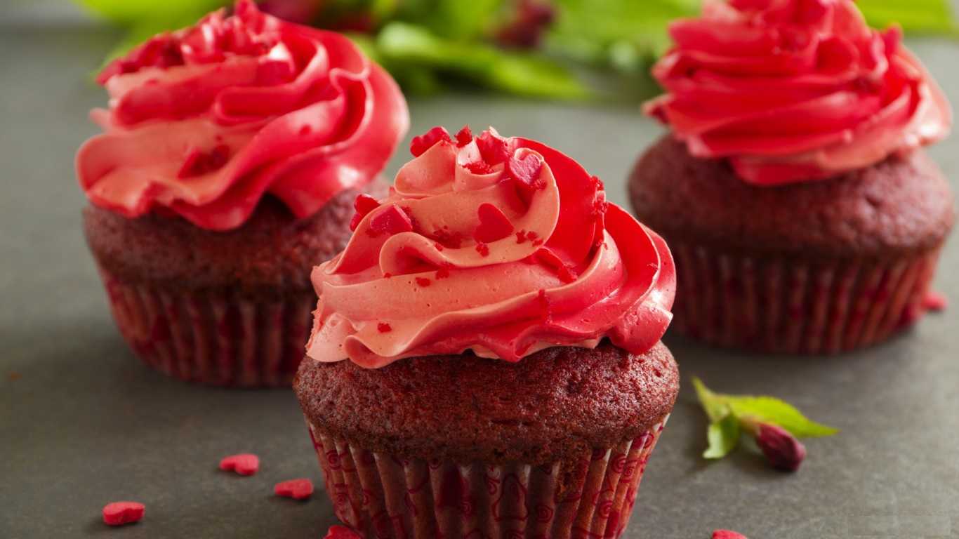 Соединяем стакан просеян.муки с щеп.соли, содой на кончике ножа и пятнадцать грамм какао. Перемешайте. Затем три четверти стакана растительного масла взбейте со стаканом сахара, ванилином и одним яйцом. В сто двадцать пять грамм кефира комн.температуры добавляем красный пищ.краситель. (смотрите инструкцию на пачке). Добавьте половину чайной л.уксуса. Красный кефир соединяем со взбитым маслом. Затем смешиваем жидкую часть с сухой. Хорошо перемешиваем, можно использовать миксер. Готовое тесто разливаем в формы и выпекаем примерно пятнадцать минут в разогр.духовке до 180 градусов.