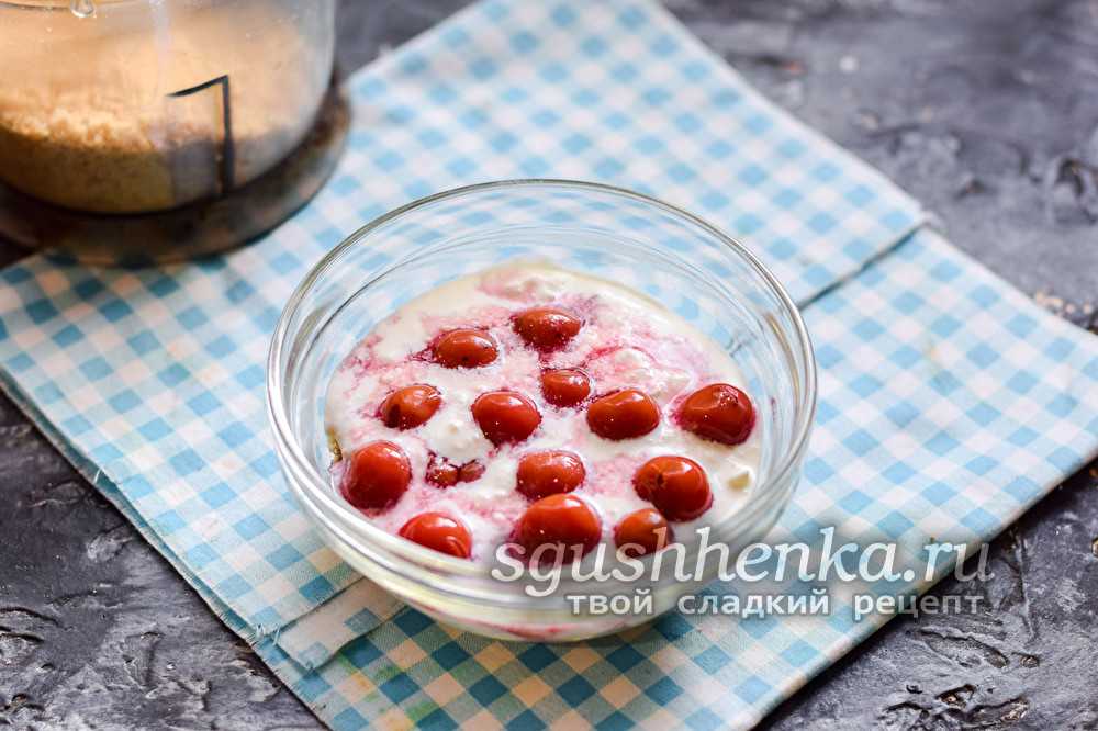 - Ягоды вишни (замороженной или консервированной) — 300 г