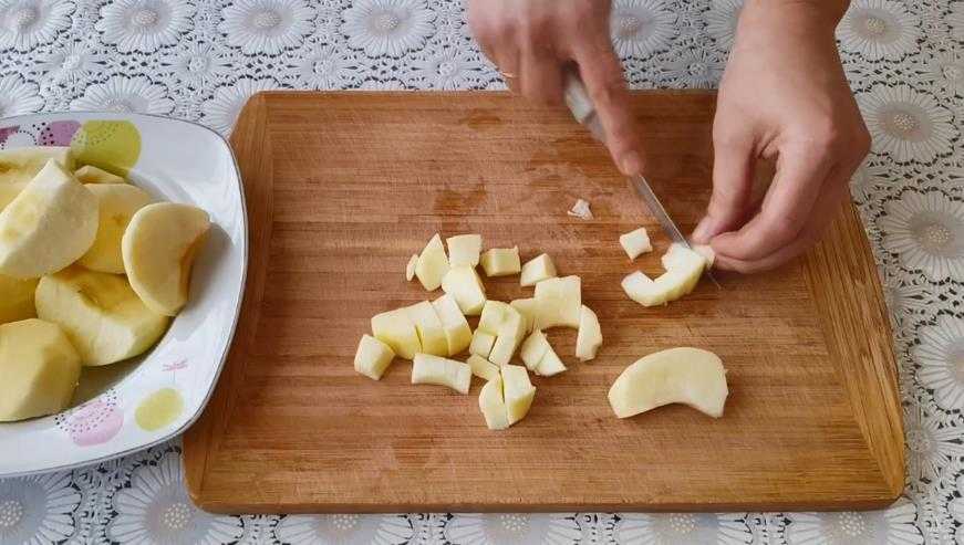 Как я уже сказала, яблок в составе будет много. И начнем мы процесс приготовления именно с них. Если фрукты у вас домашние, ничем не обработанные, то от кожуры их лучше не очищать. Ведь с ней кусочки будут держать форму, да и вообще будут ароматнее.