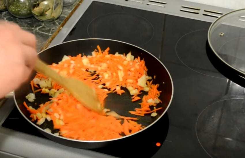 - Хорошенько разогрейте масло, положите обжариваться лук с морковкой.