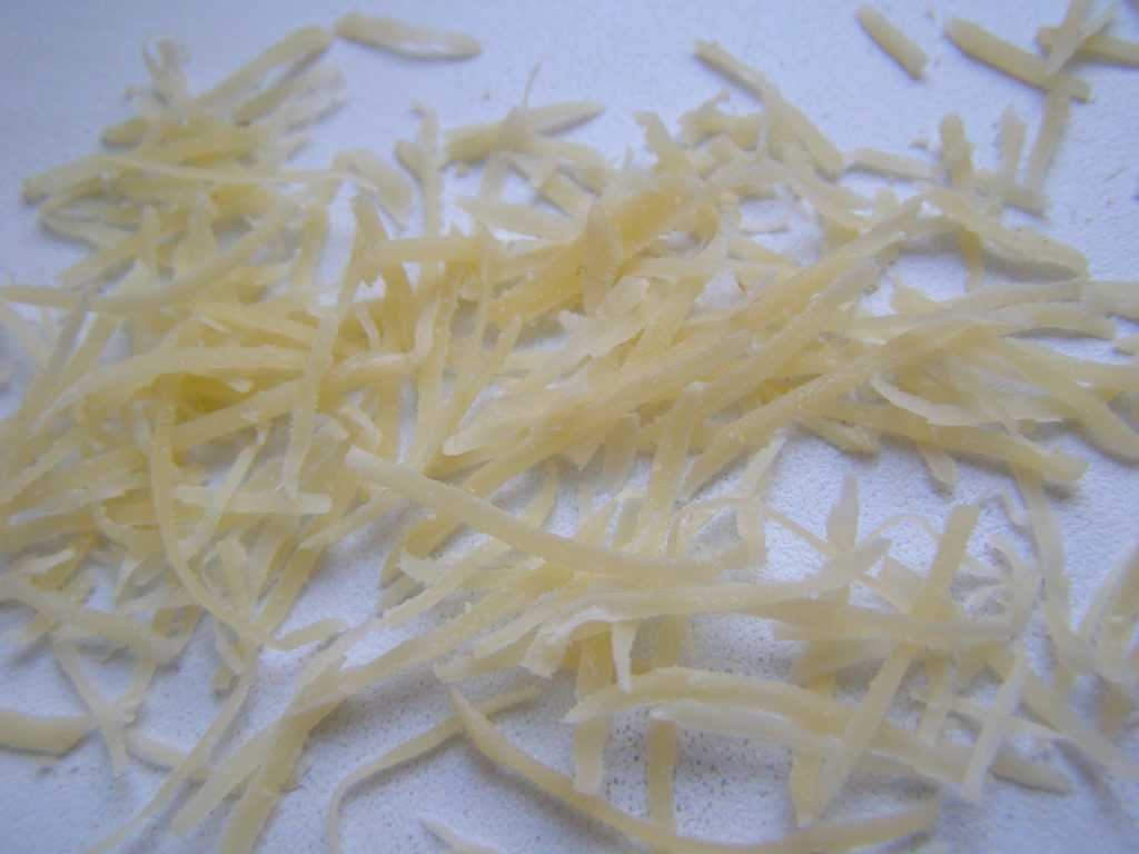 Пока печень приходит в себя, давайте подготовим все, что будет участвовать в процессе. Сыр тут играет не последнюю роль, и его количество определяйте на свой вкус. Главное – вовремя его положить. Трем на крупной терке.