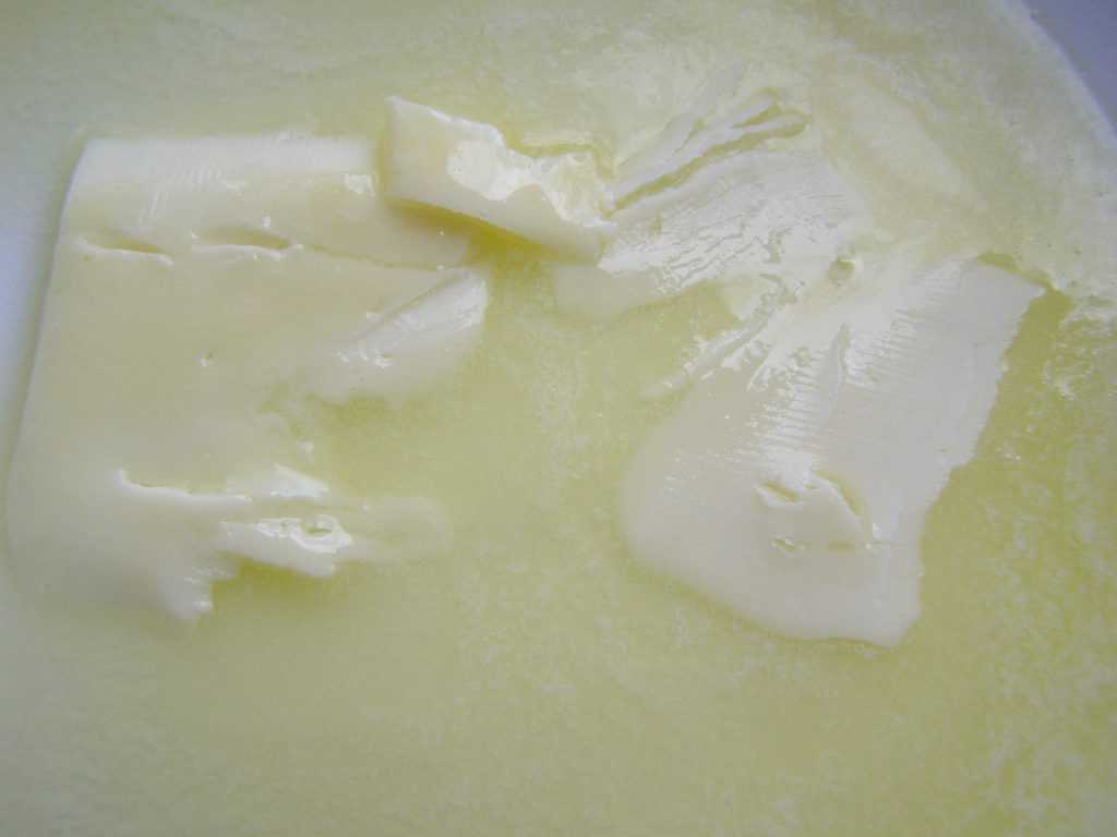 Ставим сковороду на плиту, раскаляем ее сначала слегка. Кладем масло, потом понемногу растапливаем и раскаляем.