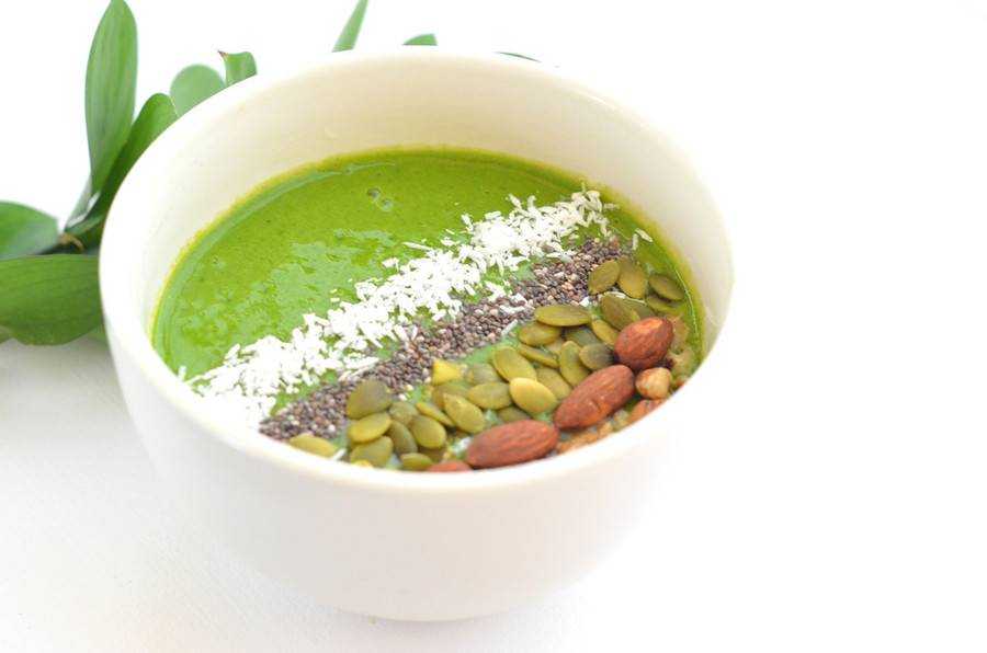 В этом варианте все просто: основой служит смузи, а сверху выкладываются другие полезные твердые ингредиенты. В этом случае при приготовлении смузи надо добавить примерно в 2-3 раза меньше жидкости, чем предполагает обычный рецепт смузи. Например, если в рецепте указано 500 мл воды, то будет достаточно 100-250 мл. Получившийся смзи выливаете в глубокую миску, а сверху высыпаете разные семена, ягоды, орехи и супер-фуды в порошке. Получается очень красиво! А кроме этого, в этом варианте прекрасно сочетается кремовая консистенция смузи (не забудьте купить себе хороший блендер — иначе смузи превратятся в мучение!) и хрустящие орешки и семечки. Идеальный вариант для тех, кто любит утром пожевать, и поэтому никак не может привыкнуть к смузи на завтрак. А в варианте боула вы получите 2 в 1.