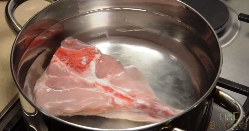 1. Приготовление блюда начнем с наваристого бульона. Для этого кусок мяса (ну или несколько кусков), опускаем в кастрюлю с чистой водой. Ставим на большой огонь и ждем закипания.