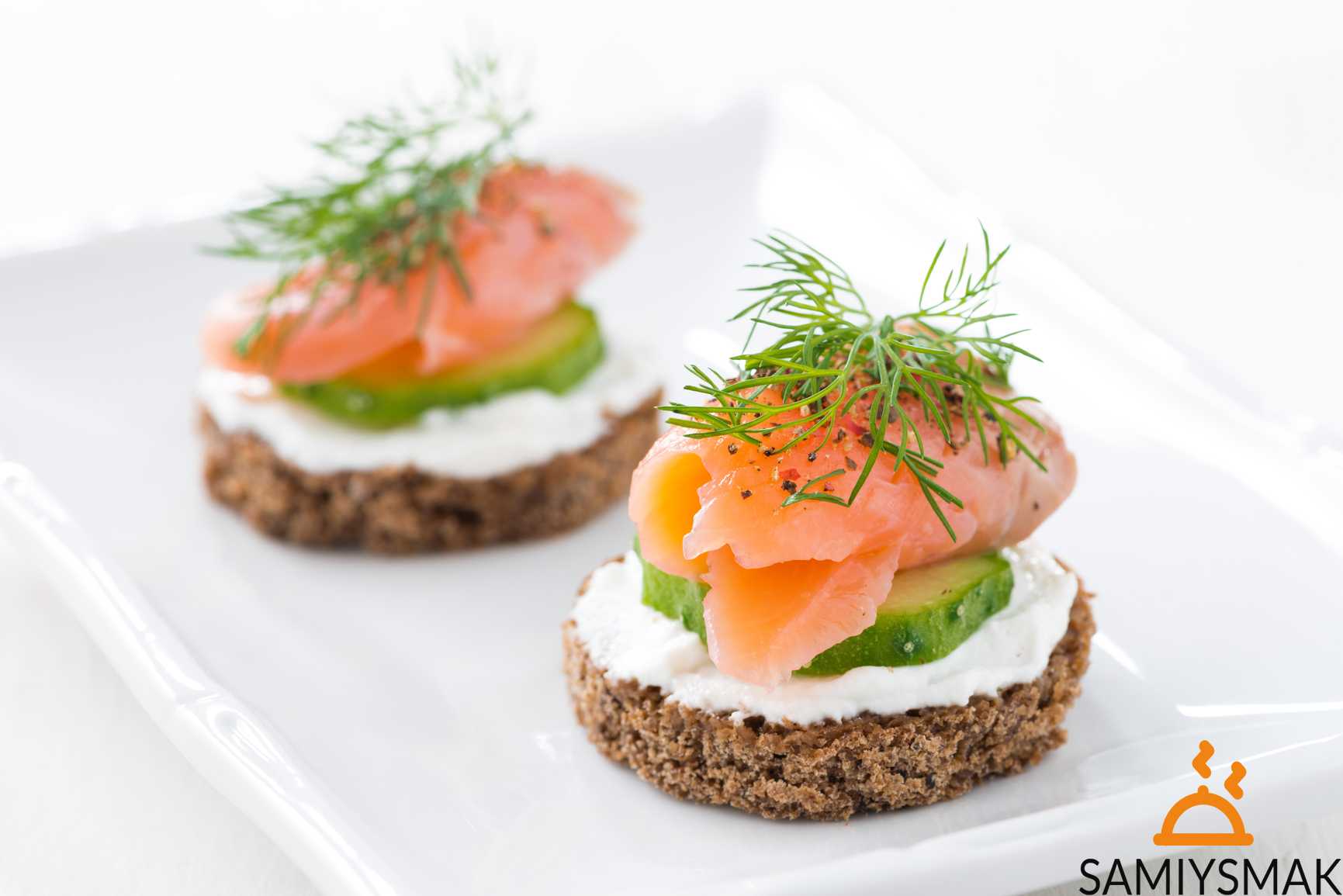 - На лосося наложите белый хлеб со всеми уже приготовленными ингредиентами.