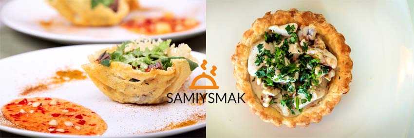 Тарталетки с красной икрой, маслом и зеленым салатом