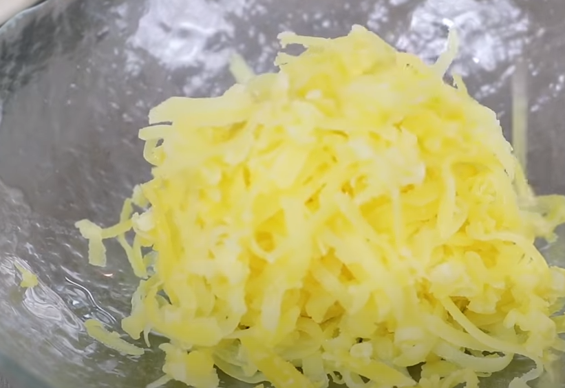 - Натираем сыр и соединяем все ингредиенты;