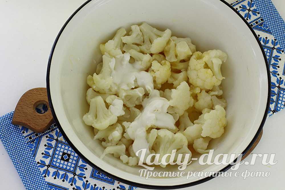 Пошаговый рецепт приготовления капусты цветной со сливками и яйцом: