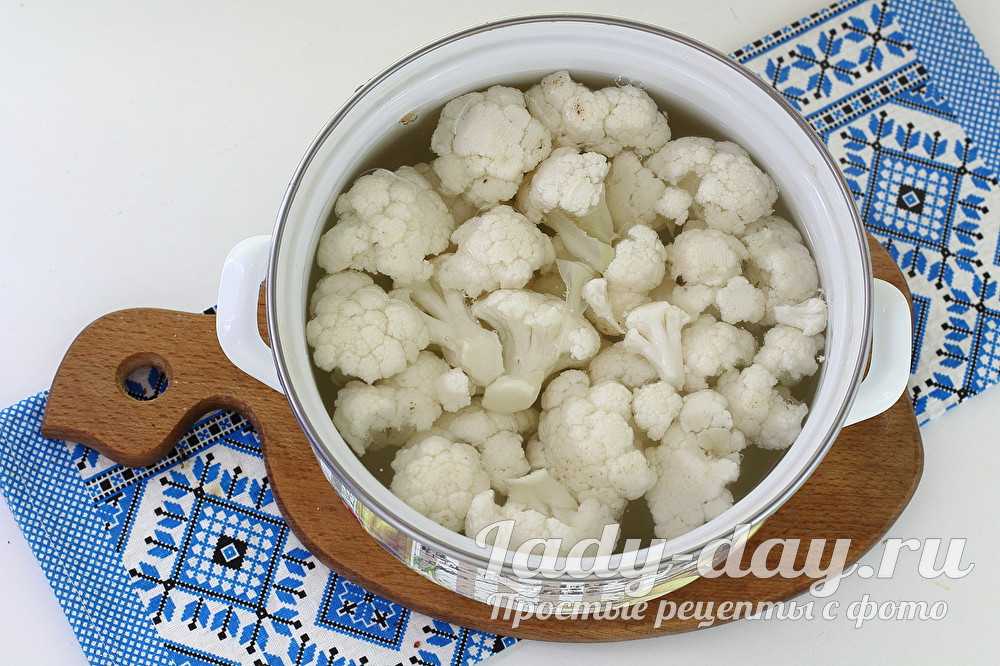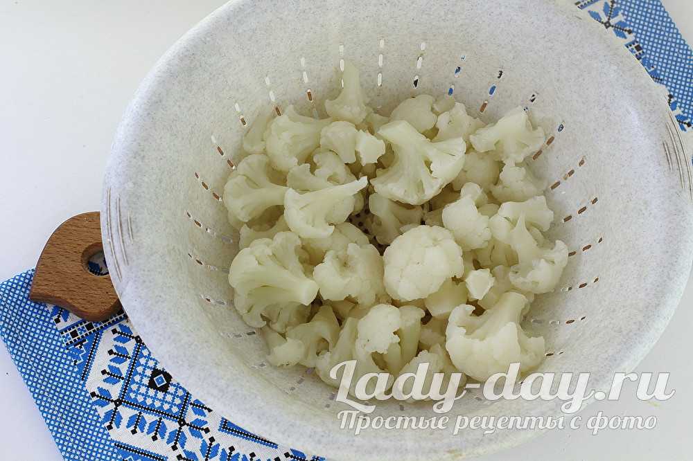 Имеется один существенный момент, озадачивающий каждую начинающую кулинарку. Сколько по времени отваривать соцветия. Учитывая, что блюдо пройдет еще одну термическую обработку в духовке, варите не более 5-7 минут. Не переваривайте, иначе корзиночки станут мягкими, потеряют свою приятную хрустинку.