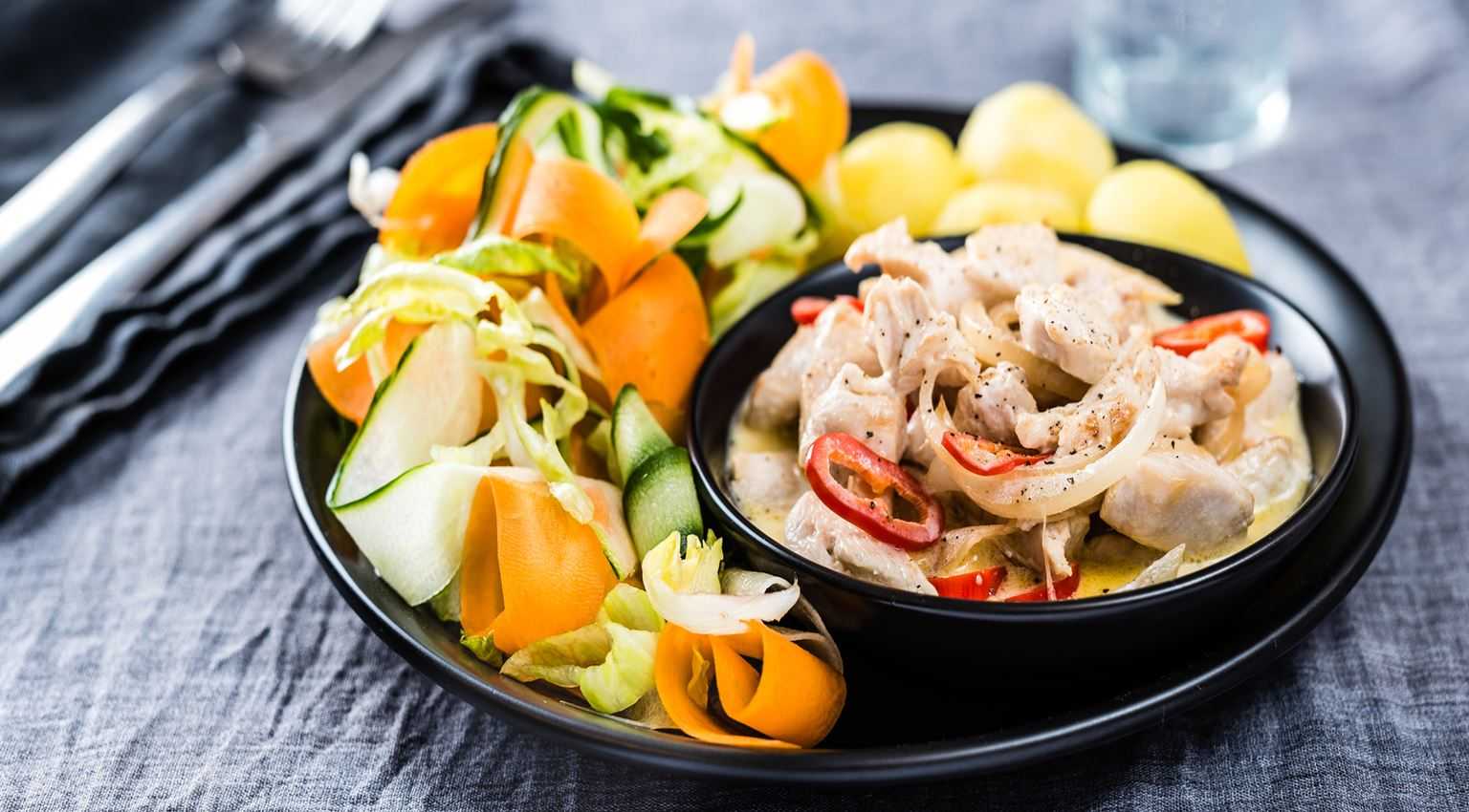 - обед: куриная грудка (запеченная или отварная), тушеные овощи (капуста, морковь, помидоры, горошек, лук, кабачок);