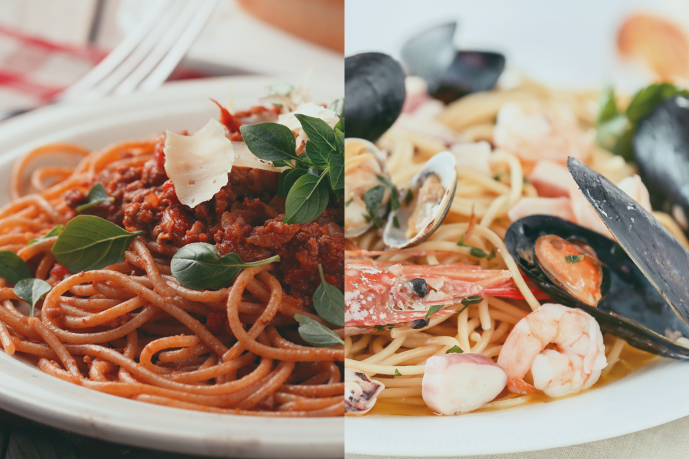 Паста болоньезе vs. паста с морепродуктами