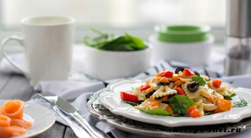 Теплый салат с запеченным перцем и пастой